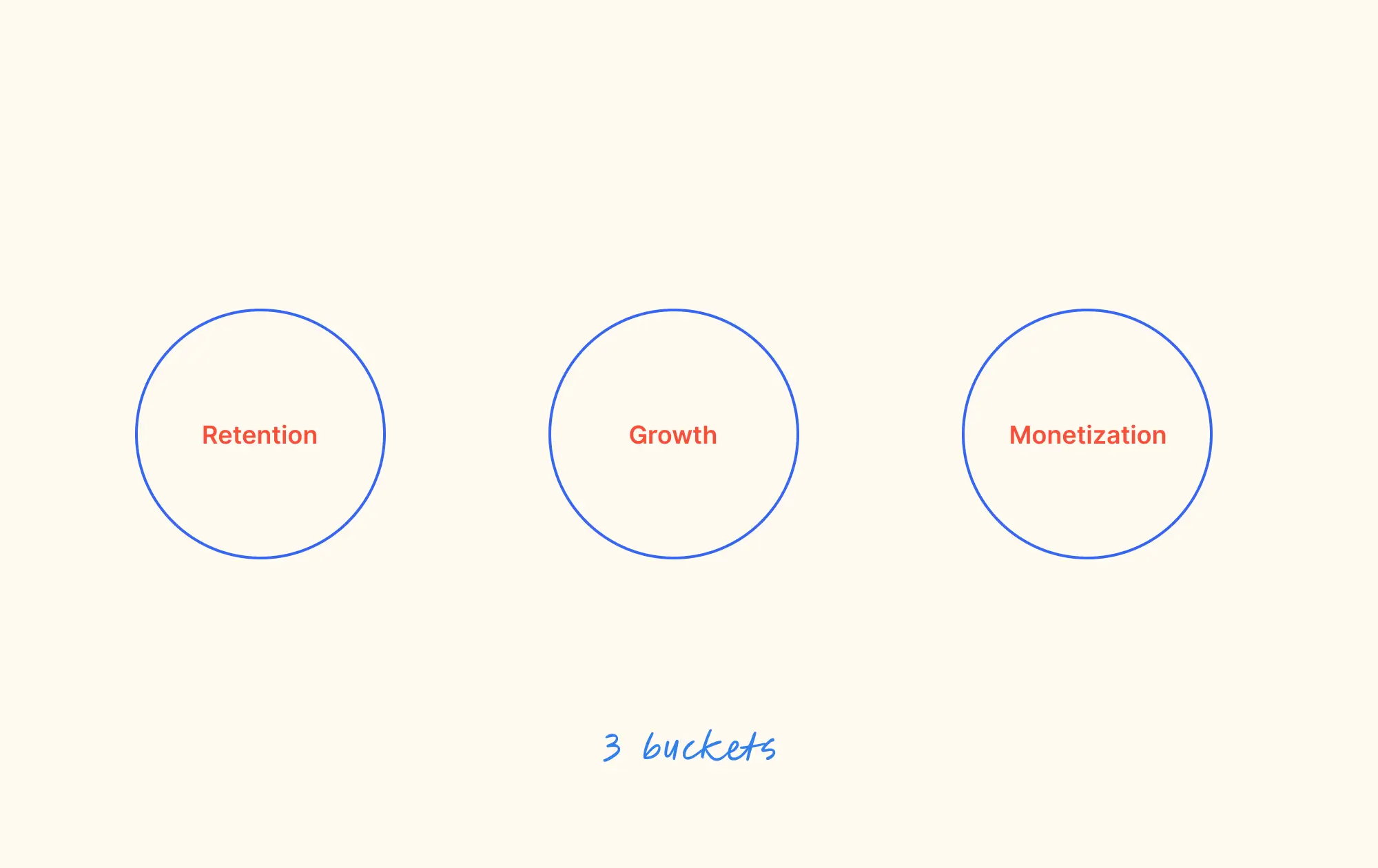 So every time whenever we come up with some new feature idea, it must impact minimum 2 out of 3 things. If it hits 3, leave everything and build. Here are those 3 things, in order.